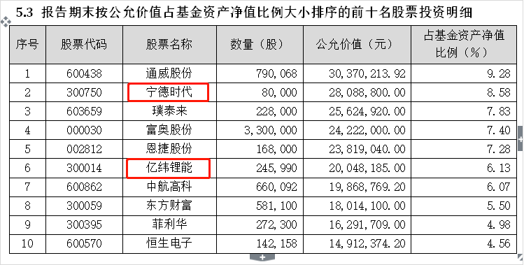 而资料显示,在管的汇安裕阳定开混合最新十大持仓股,包括宁德时代、亿纬锂能、通威股份。