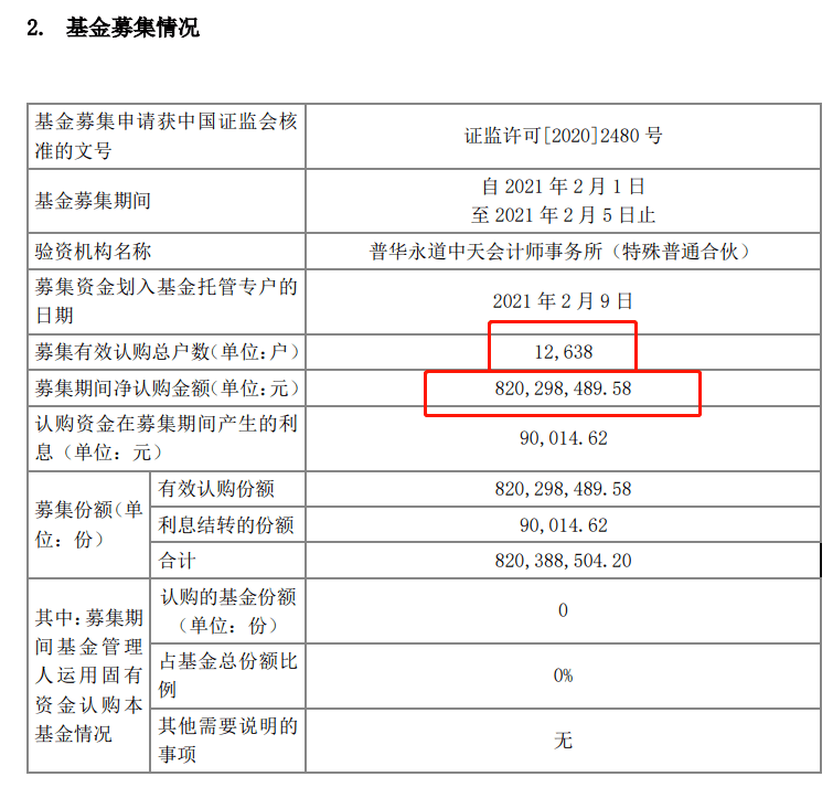 借助招行强大的渠道,最终募集规模8.2亿元,得到12638户投资者认购。成绩还是相当不错的。