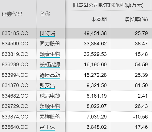 除贝特瑞(4.95亿)、同力股份(3.34亿)、颖泰生物(3.25亿)、长虹能源(1.62亿)之外,其余个股归母净利润均在千万元水平。