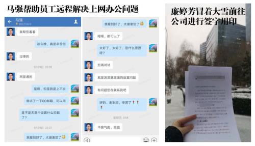 2月4日,受疫情影响,考虑到员工的安全问题,公司推迟复工时间,转而选择以线上的方式开展了千人视频大会,为了有效确保线上会议的顺利举行,信息科技部的马强清晨5点左右便租车自驾前往公司,一直忙碌到会议召开完毕才离开。对马强来说,无论何时,只要公司和同事有需要,他就义不容辞。1月29日晚,身处西宁的党群工作部员工高丽敏因工作需要,要在家用电脑上登陆工作邮箱,但一直登陆不上,马强在得知这一情况后二话没说,当即提供远程协助检测网络、查杀病毒、调试IE.....一直忙碌到凌晨。