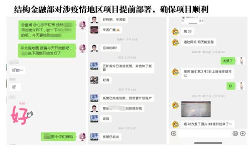 结构金融部也遇到了同样的问题,某项目融资人原计划将于2月3日偿还贷款本息,可融资人同样位于疫情爆发的武汉市。面对突发疫情,项目信托经理和相关员工立刻与融资人、委托人展开积极沟通,最终顺利向委托人足额兑付信托利益,得到了委托人的一致认可。
