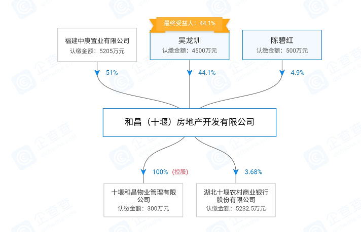企查查显示,2018年6月12日,和昌十堰的注册资本从5000万元猛增104.1%至1.02亿元,新增股东福建中庚置业有限公司,福建中庚、吴龙圳和陈碧红分别持股51%、44.1%和4.9%。因此,中庚地产也成为6名被执行人之一。