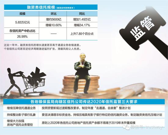 值得一提的是,有数位接近银保监会的消息人士向记者透露,监管部门已对今年的压降规模有初步计划:2020年全行业压降1万亿具有影子银行特征的融资类信托业务。