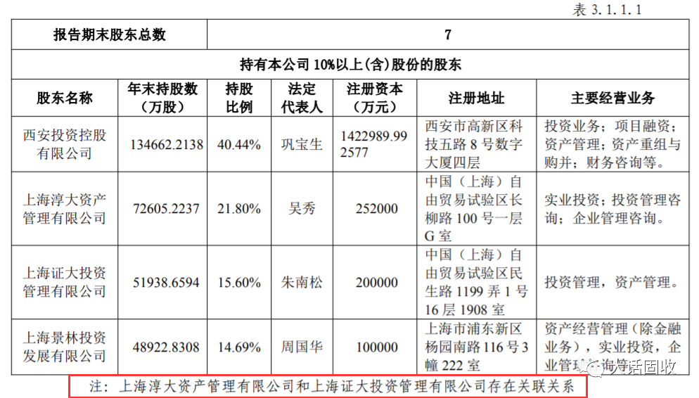 到这里,看上去最大股东还是西安投资控股。但是二者的差距仅有3个百分点,但是如果占比14.69%的第四大股东“上海景林投资发展有限公司(已改名为上海随道投资发展有限公司)”和嘉腾控股有限公司有关联关系,那结果就不一样了。