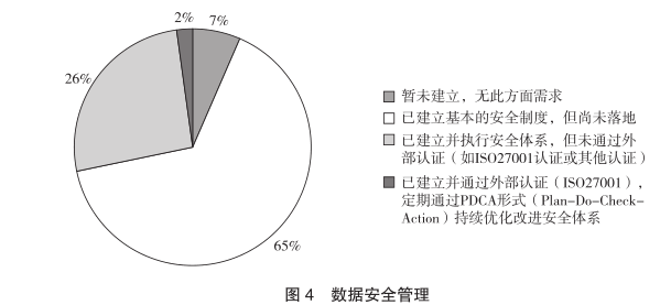 第四,在数据安全方面,大部分公司已采取了数据脱敏、数据分类分级等零散的管控措施,但没有一家公司建立完整的数据安全体系。