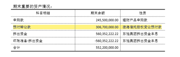 5月12日,记者翻阅渤海人寿2019年年报发现,在“期末重要的资产情况”一栏,其已支付渤海信托股权受让预付款3.067亿元。