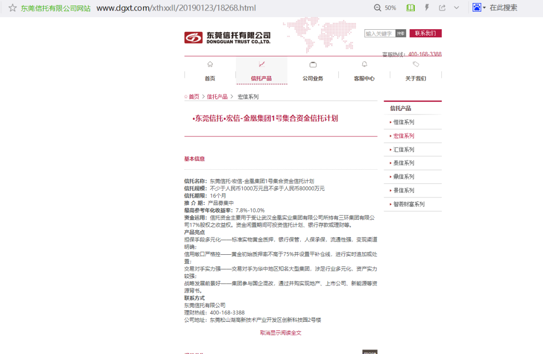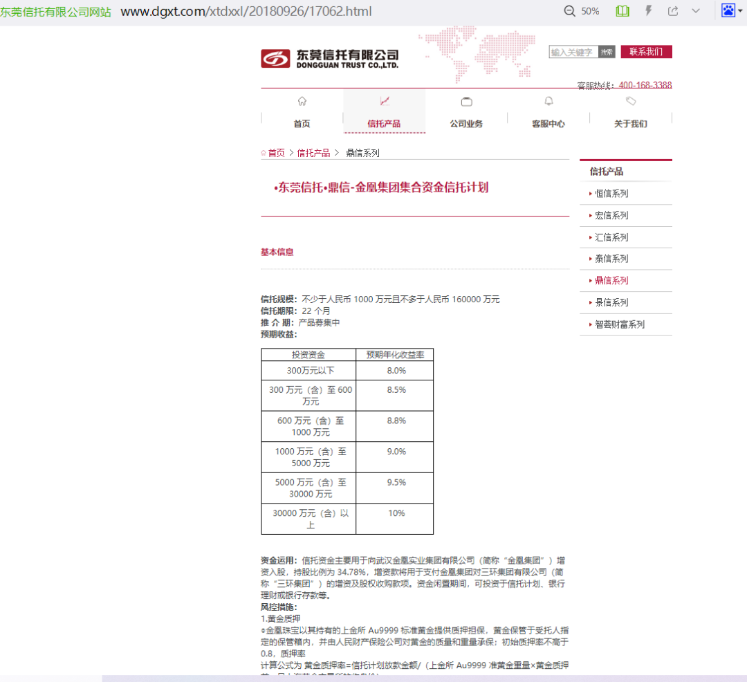与东莞信托·鼎信-金凰集团集合资金信托计划投资方向一致,金额也对应。