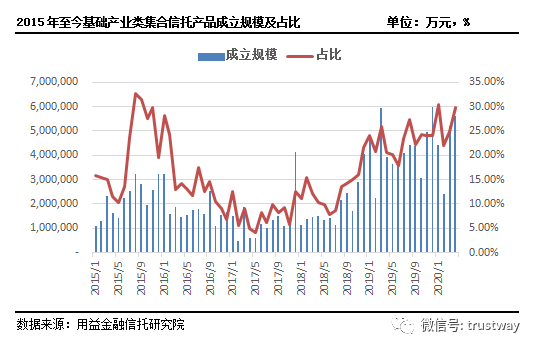 用益信托研究人士认为,“资产荒”的背景下,受政策支持的基础产业领域是少数优质投资标的之一。基础产业类信托受政策的影响较大,基建“补短板”、专项债提前发行、允许专项债作为资本金、下调部分基建类项目的资本金要求、扩大专项债作为资本金的适用项目范围等系列促进基建投资的政策陆续出台。目前来看,“新基建”将成为基建投资领域新的发力点,将给信托行业带来新的业务突破口,“新基建”兼顾短期逆周期调节及中长期高质量发展要求,将成为基建投资领域新的发力点。