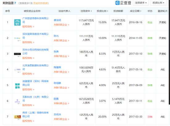 5)放肆星球(深圳)网络有限公司是一家娱乐+互联网公司,2019年3月获得薛蛮子A轮融资,持股比例4%。