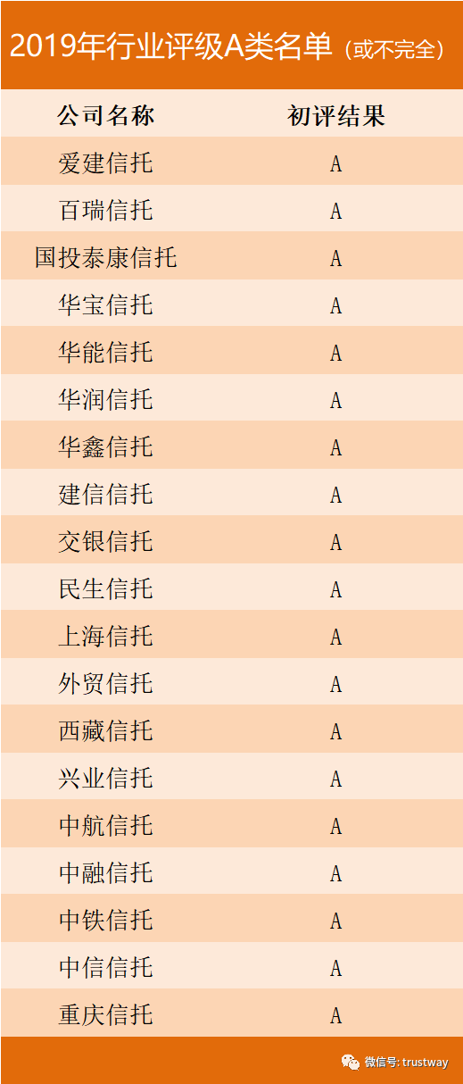原标题: 19家信托行业评级A类公司曝光,监管趋严新政频出行业分化或进一步加大