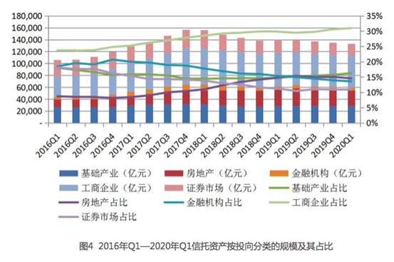 此外,从2020年一季度的数据看,我国信托业对房地产信托的依赖程度稳步下降。