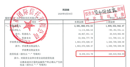 五矿信托上半年的投资收益也出现了较大幅度的同比下降。去年同期,五矿信托实现了4.4亿的投资收益,而今年仅实现了823万元的投资收益,同比降幅为98%。
