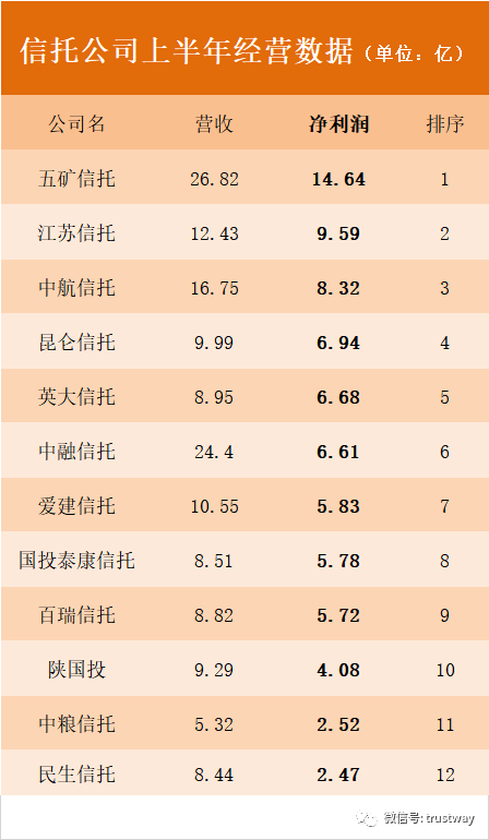 截至今日晚间,已有12家信托公司上半年经营数据出炉。