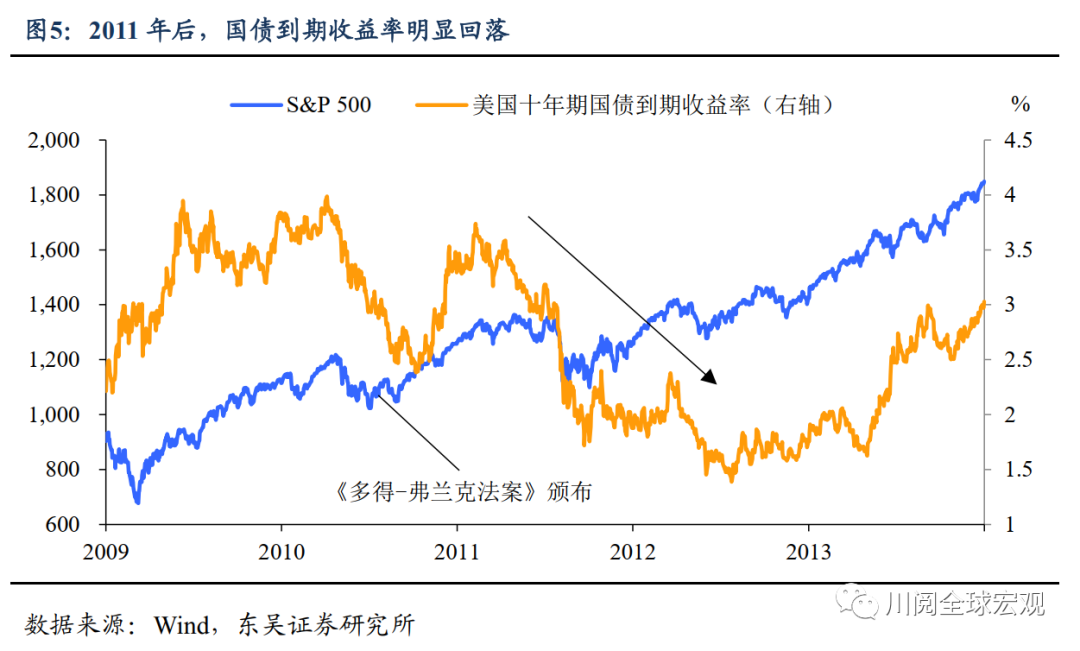 美国《多得-弗兰克法案》出台后,主体评级趋于稳定,美债收益率有所回落。法案出台后一周,S&P收益率达2.09%,但自第二周后出现回落,一月后收益率为-1.09%。同时,法案出台后标准普尔评级趋于稳定,评级下调数量有所减少,这在一定程度上促进了债券收益率的下降,3年十年期国债到期收益率下降超50bp。