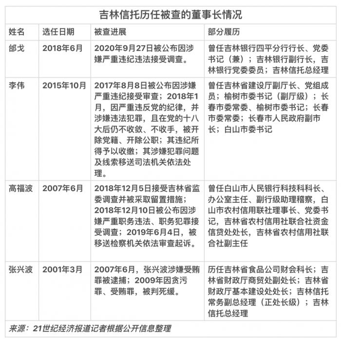 吉林信托近年来的日子并不好过,汇融50号、汇融38号、汇融16号等多个项目逾期,原董事长张兴波、高福波、李伟纷纷落马。此次又增一任董事长被查。