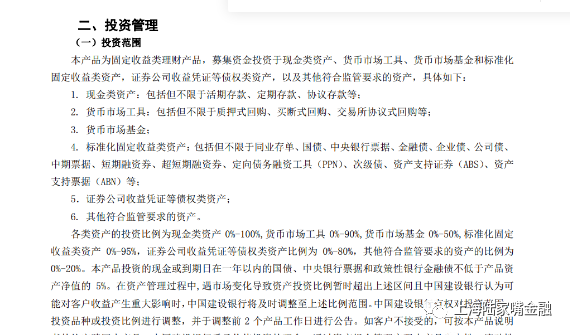 可是更多的理财产品光看名字你们根本不知道它是投向哪里的啊,比如这款建行的“乾元-惠享季季富”,这样的名字谁能看出它是要干嘛?我们只有从产品说明书里才能看到它的大致投向,非常繁复:现金类资产、货币市场工具、地产基金、企业流动资金等等......我们根本不知道这钱具体用到何处,资金投向所缺乏公开性、透明性。