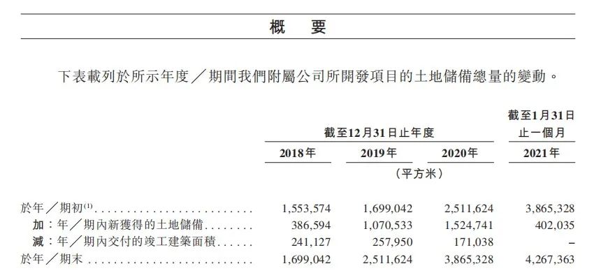 为实现业务扩张,方直发展加强土地收购力度,其土储规模从2018年的38.7万平方米增长到2019年、2020年的107.1万平方米、152.47万平方米;土地成本支出分别为4.13亿元、3.56亿元、8.45亿元,占物业开发及销售成本的比例分别为18.6%、18.3%和43.3%。