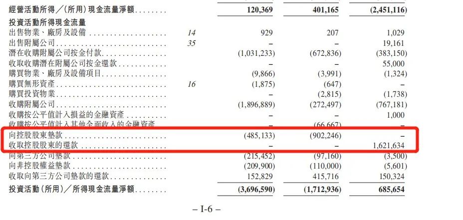 而方直发展2020年投资活动现金净额能够由负转正,除了大幅减少“对潜在收购附属公司的按金付款”,还有一个重要原因就是“收到控股股东的还款”。招股书显示,2020年,方直发展收取控股股东还款16.22亿元。而在2018年和2019年,方直发展则分别向控股股东垫款4.85亿元和9.02亿元。