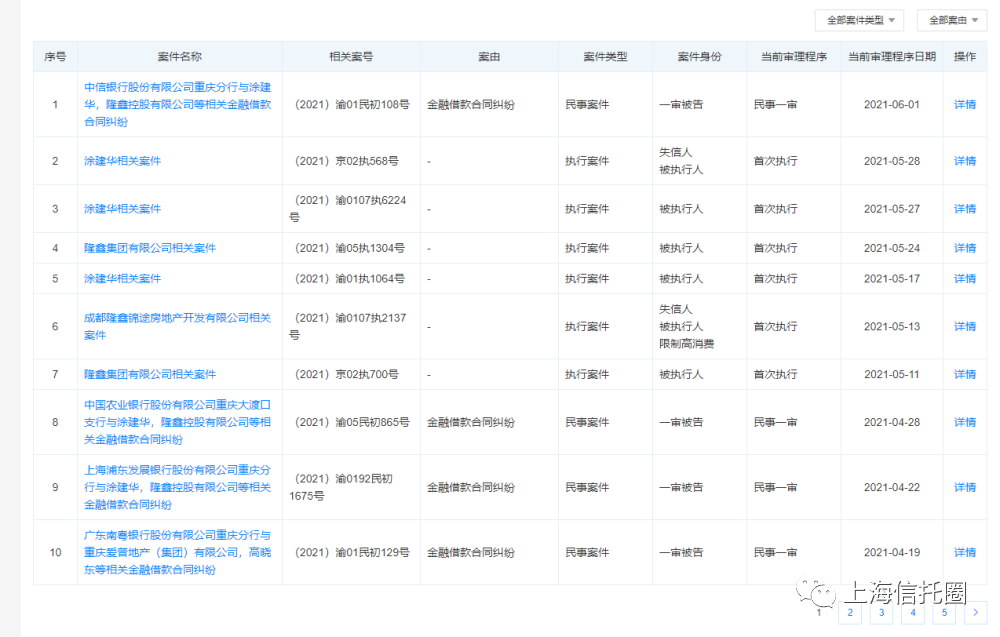 另外,6月4日,本财经获悉,重庆华辰物业发展有限公司(华辰物业)新增10起开庭公告,案由均为破产债权确认纠纷,上诉人/原告均为重庆国际信托股份有限公司,被上诉人/被告为周某、华辰物业、王某等,案件将集中于7月15日开庭审理。