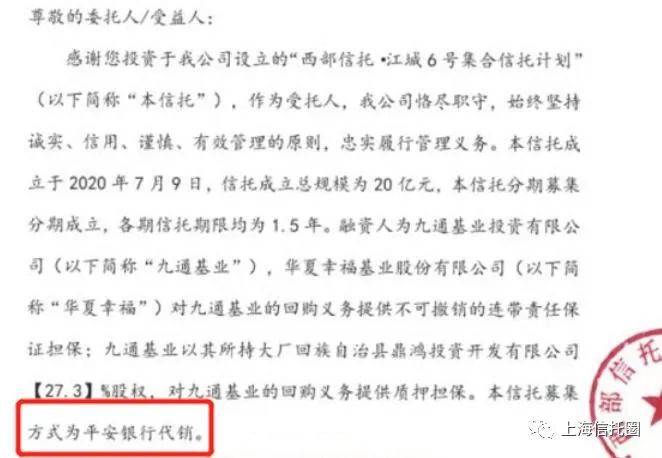 关于该产品情况,上海信托圈小编通过信托内部人士了解到,他们信托公司从来没有销售过此产品,该产品确实为平安银行代销的。