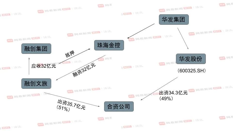 也就是说,融创文旅入股该地块的资金,大部分是从华发系的金控平台借来的,而融创为这笔大额借款提供的质押品,是融创系内部往来产生的应收账款。