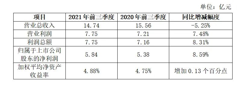 陕国投A2021年前三季度部分财务数据表现