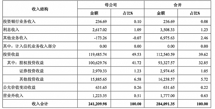 2020年年报显示,中诚信托当年营收23.9亿元,净利润9.7亿元;合并报表的营收为28.3亿元,净利润约11.1亿元。收入结构中,手续费和佣金和投资收益各占近一半。