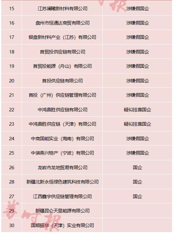 不过,这16家有国资背景的债务人中,除了少数几家是正儿八经的国企(比如,龙地贸易),其余大部分都是涉嫌挂靠的假国企。