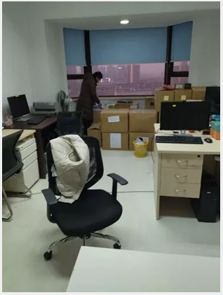 记者与投资人先来到10楼1008室的培信贸易,办公区面积大约40平米,内有4人在办公,现场凌乱地堆放着大量贸易单据(图4)。