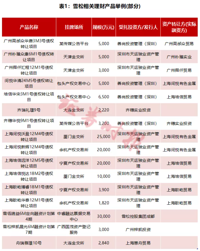这便是雪松所销售的债权类非标理财产品的政策背景。自2020年1月起,雪松相关理财产品全线在各地金交所、产交所挂牌。