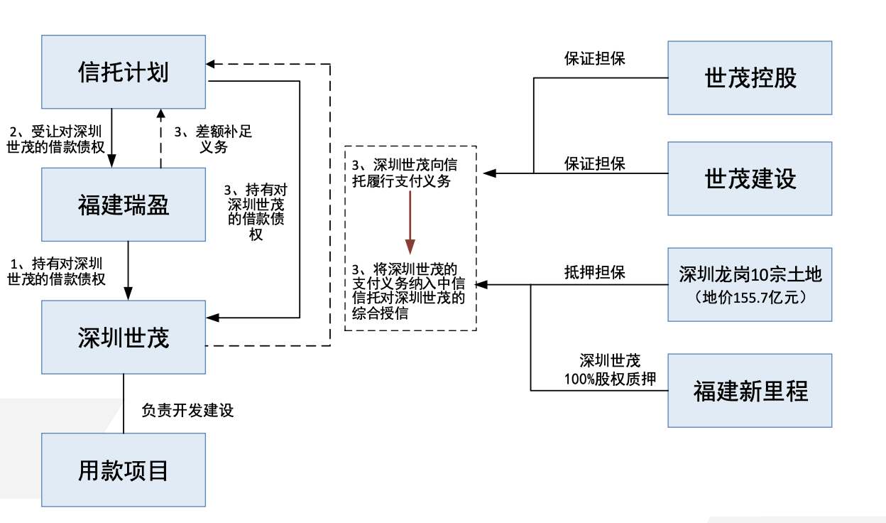 同时,该信托计划的增信措施包括,世茂深圳深港国际中心项目下属的10宗地块作为土地抵押,涉及地块总建筑面积85.16万平方米,其中,可售物业32.32万平方米;项目公司深圳世茂新里程100%股权质押予中信信托;而世茂集团及上海世茂建设提供保证担保。