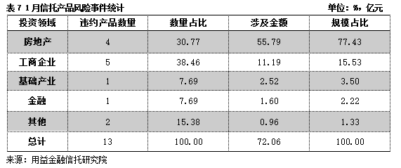 1月共发生信托产品违约事件13起,涉及金额72.06亿元
