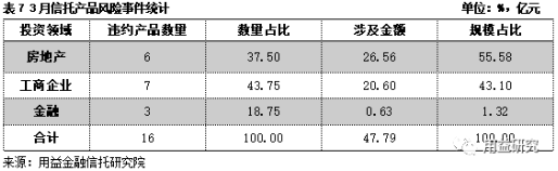 3月共发生信托产品违约事件16起,涉及金额47.79亿元