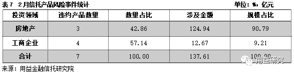 2月共发生信托产品违约事件7起,涉及金额137.61亿元