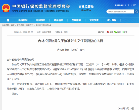 近期,吉林省政府最新任免一批干部,吉林信托总经理的最新任命也在其中。