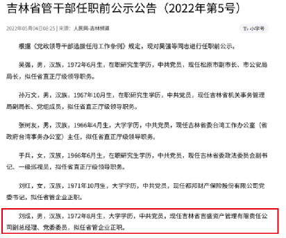 在此之前,5月4日,吉林省发布省管干部任职前公示公告,刘成拟任省管企业正职。时隔不到一个月,刘成任职吉林信托总经理的任命正式落地。
