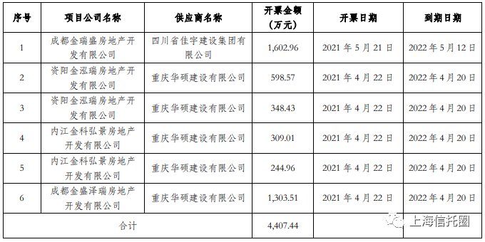 对于深交所要求公司说明是否存在票据支付违约情形,金科股份回复称,所涉事项为公司名下并表项目公司因生产经营需要向公司供应商以开具商业承兑汇票的方式支付工程进度及材料款,该商业承兑汇票的承兑人为公司;相关供应商收到商业承兑汇票后与天津联融商业保理有限责任公司签订保理合同,供应商向联融保理申请有追索权的国内保理业务,并将其持有的商业承兑汇票为联融保理提供质押担保,联融保理据此向供应商提供保理融资额度。