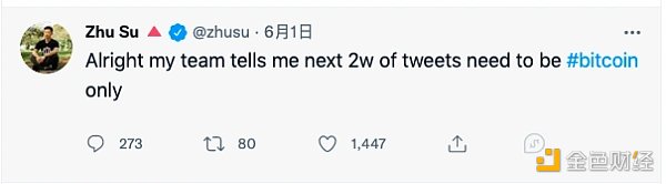从今年 6 月开始,向来高调的 Zhu Su 变得‘沉默’了,开始减少对除比特币之外其他币种的评论;即便是涉及比特币,也是罗列有利数据给市场充值信仰。在推特中,他写道‘我的团队告诉我接下来 2 万条推文最好只有比特币’。并且,他还从其推特个人介绍中删除 ETH、AVAX、LUNA、SOL、NEAR、MINA 等字样。
