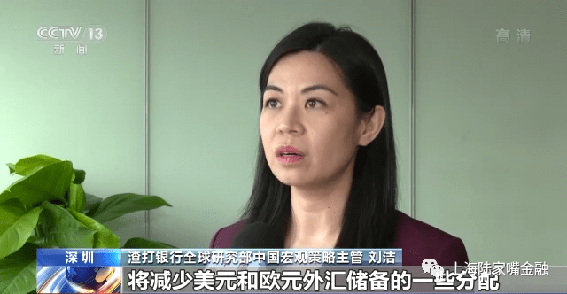 渣打银行全球研究部中国宏观策略主管 刘洁:典型的例子就是以色列央行已经公布了它将减少美元和欧元外汇储备的一些分配,从而把这一部分多余出来的量分散到一系列其他的货币,同时第一次开始把2%的一个债券投资到人民币,这样的一个趋势,我们觉得仅仅只是一个开始。