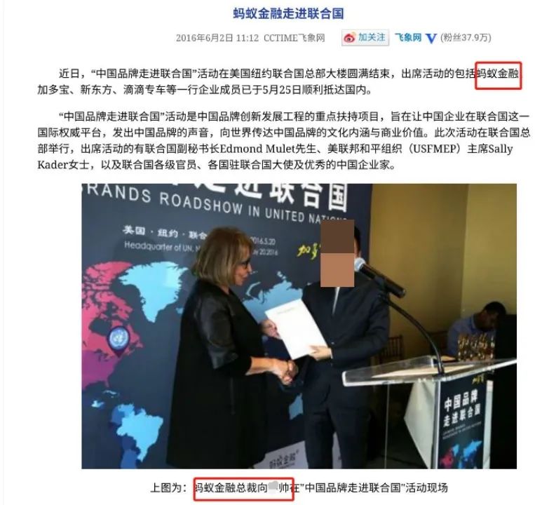 目前网络上还有关于向某帅的多篇宣传通稿,将其描述为“金融翘楚”。文章中对于“蚂蚁金融”介绍为:蚂蚁财富(北京)投资基金管理有限公司作为经中国证监会批准成立的全国性基金管理公司之一,注册资金20000万人民币,总部位于北京京信大厦。甚至还有“蚂蚁金融走进联合国”等宣传。