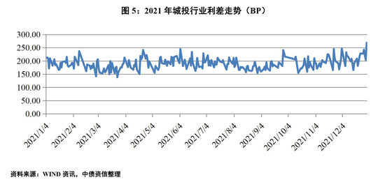 [1]本文基于2021年城投主体全年所发行信用债(短融、中票、公司债、企业债、PPN)二级市场成交数据,在剔除含权债、期限超过10年的以及快到期债券后,与国开数据做差得到个券利差,通过成交量加权得到最终利差。