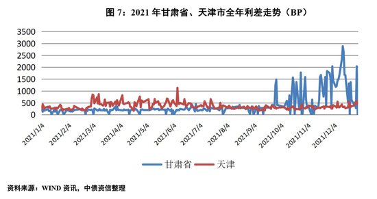 4、受宏观经济及行业政策等多因素影响,2021年城投行业利差整体呈现波动上浮状态,区域分化明显