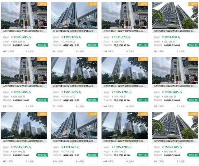 近日,位于深圳市南山区的宝能城花园(东区)三期工程B座1单位-2单元的21层-35层等56套法拍房集中“上架”阿里司法拍卖平台,等待变现。