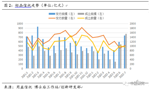 2、标品信托的规模加速