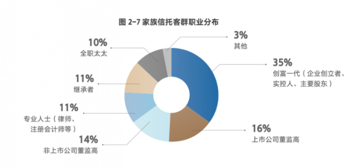 《报告》将“年轻化,多元化”总结为家族信托客群的新特征。换言之,家族信托的客群基数不断扩大,呈现年轻化、行业多元化特征,来自新兴行业的人群逐步增长。