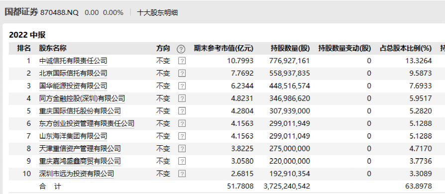 也即,仅叠加上述两家公司的表决权,重庆国际信托的话语权就已超过国都证券第一大股东中诚信托(持股13.33%)。