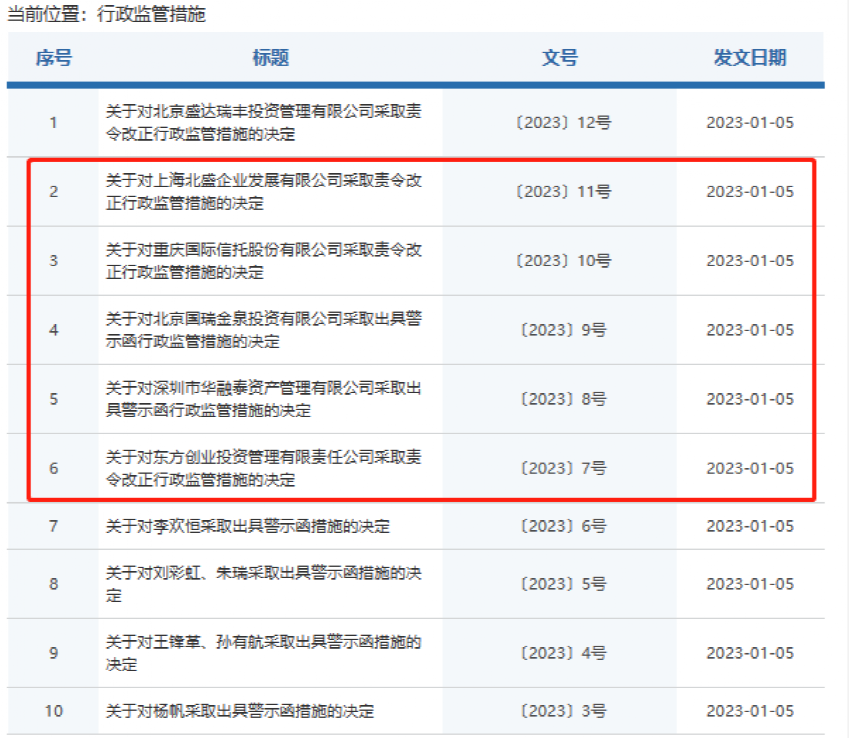 除了重庆国际信托外,北京证监局也同步点名违规让渡股东权利/未说明一致行动人关系的5名小股东,并对其作出警示函、责令改正等行政监管措施。