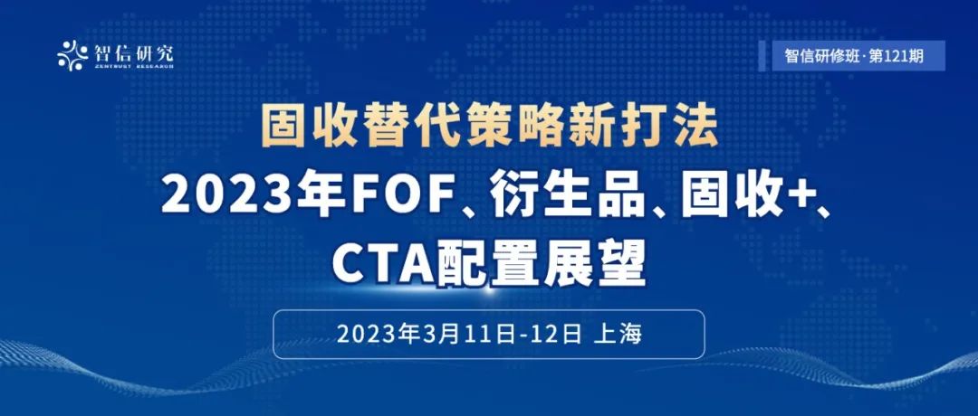 智信研究将于2023年3月11日-12日(周六、周日)在上海举行主题为“固收替代策略新打法:2023年FOF、衍生品、固收+、CTA配置展望”的线下资管业务研修班。紧贴热点,从客户需求出发,更深层次解析固收替代策略的实操玩法;策略全解析,根据不同策略差异,进一步解析投资、产品设计等逻辑;实操精炼,四位讲师均在相关领域有着极强的实操经验,经过市场验证。