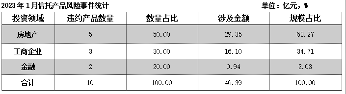 据公开资料不完全统计,1月已披露信托违约产品10款,涉及金额46.39亿元。