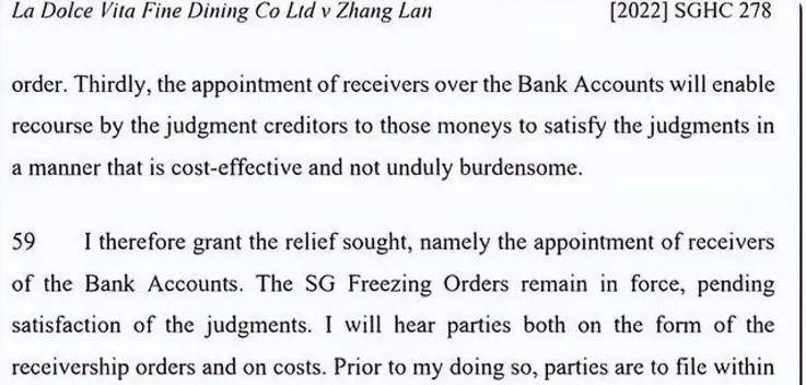据媒体报道,为了追回欠款,CVC盯上了张兰的家族信托。新加坡高等法院披露的裁判文书显示,新加坡高等法院法官认定张兰是其离岸家族信托所在银行账户资产的实际所有人,因此同意了CVC提出的任命接管人的申请。这也意味着,张兰的债权人CVC可以申请对这笔资金采取相应的执行措施。